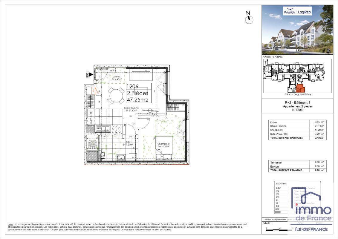 Au 2er étage, d''une surface de 47.25m², il se compose d'une entrée, d'un séjour lumineux, d'une cuisine ouverte, d'une chambre et d'une salle d'eau avec WC.