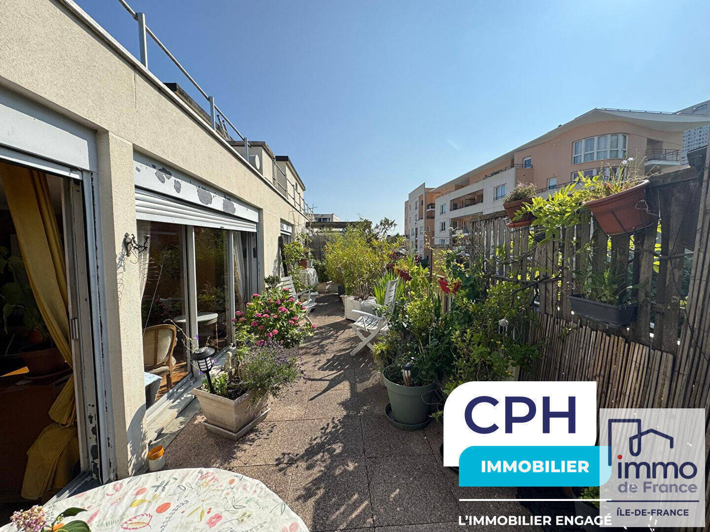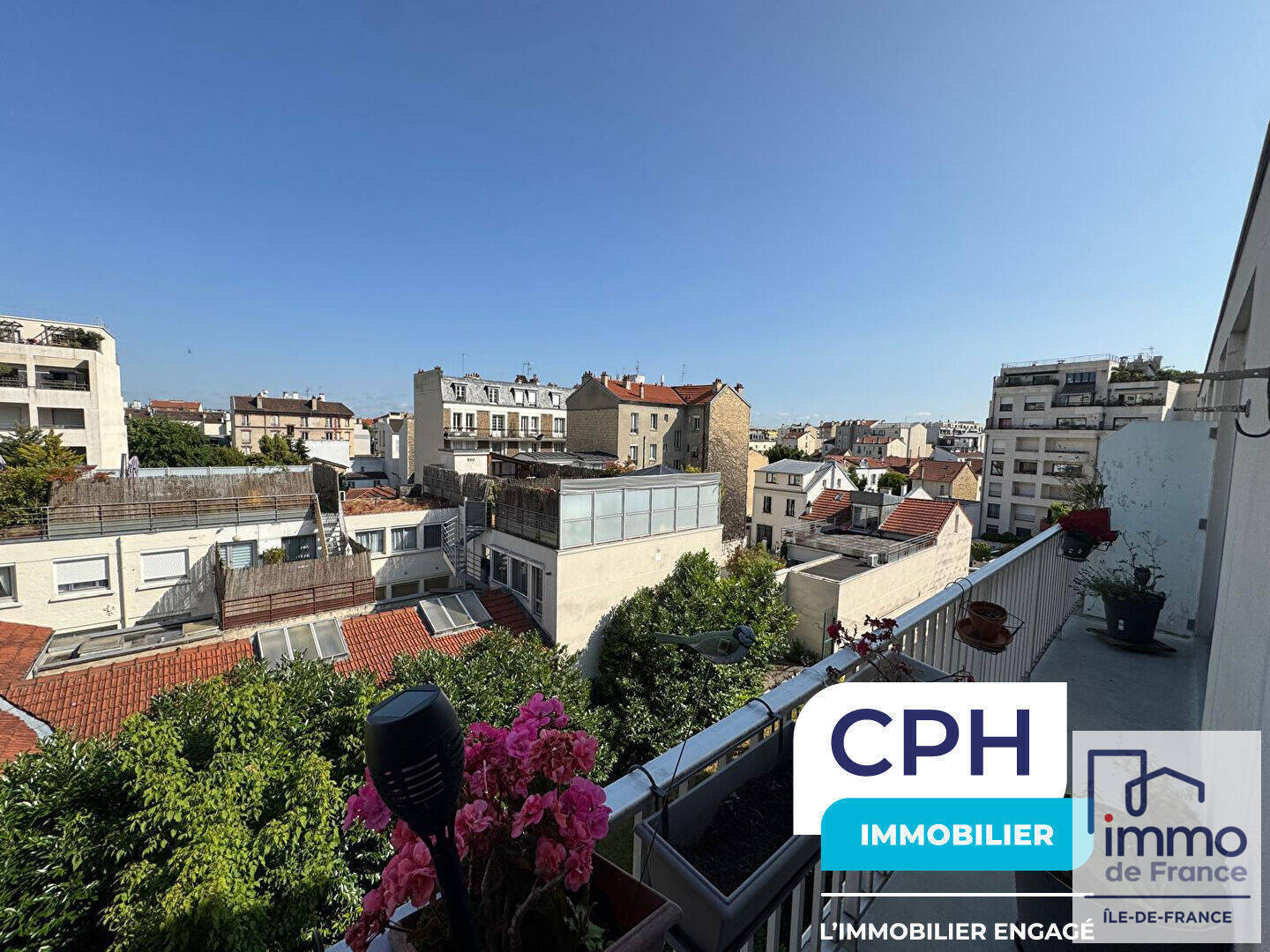 Terrasse de 34 m² et balcon de 6 m² avec vue sur La Défense.