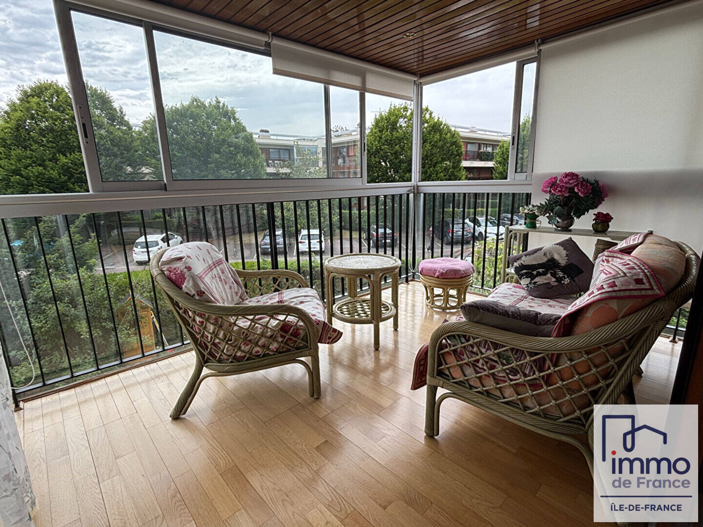 Idéalement situé au calme, à proximité du centre commercial et de l'une des piscines privées de PARLY2, des écoles et des bus, bel appartement de 3/4 pièces en parfait état et très lumineux et offrant une vue dégagée, comprenant: une entrée desservant un séjour double donnant sur une loggia vitrée, une cuisine équipée, deux chambres, une grande salle de bains et des WC séparés.