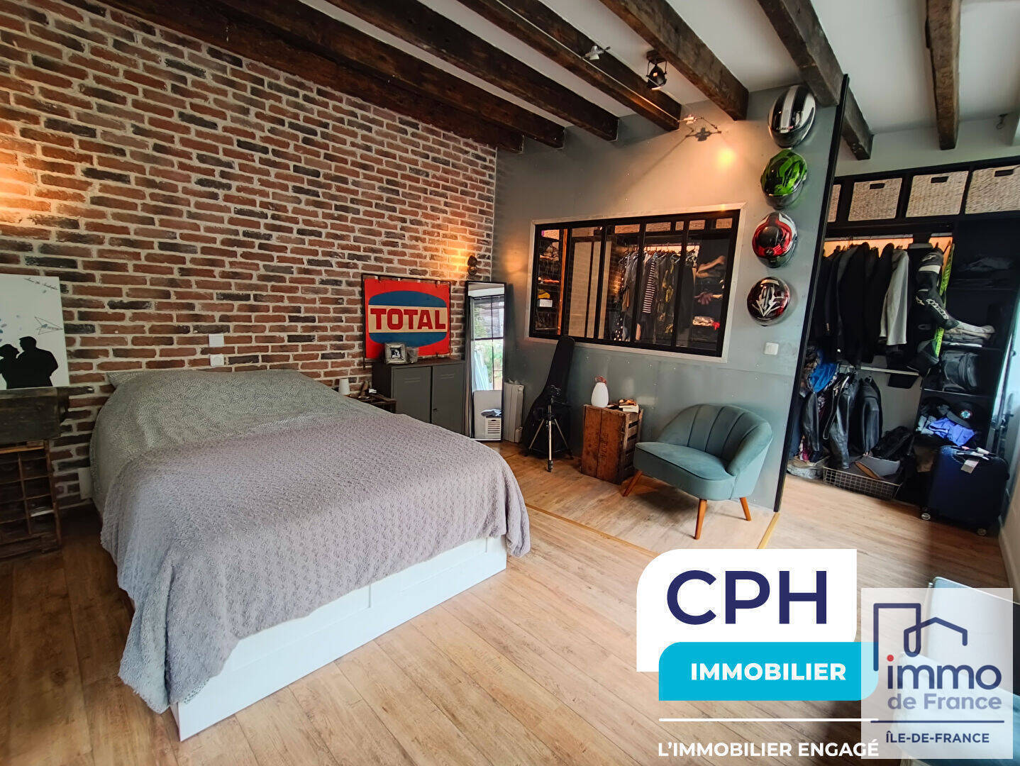 A l'étage, un palier dessert deux belles chambres avec mezzanines, apportant charme et volume, ainsi qu'une seconde salle de bains.