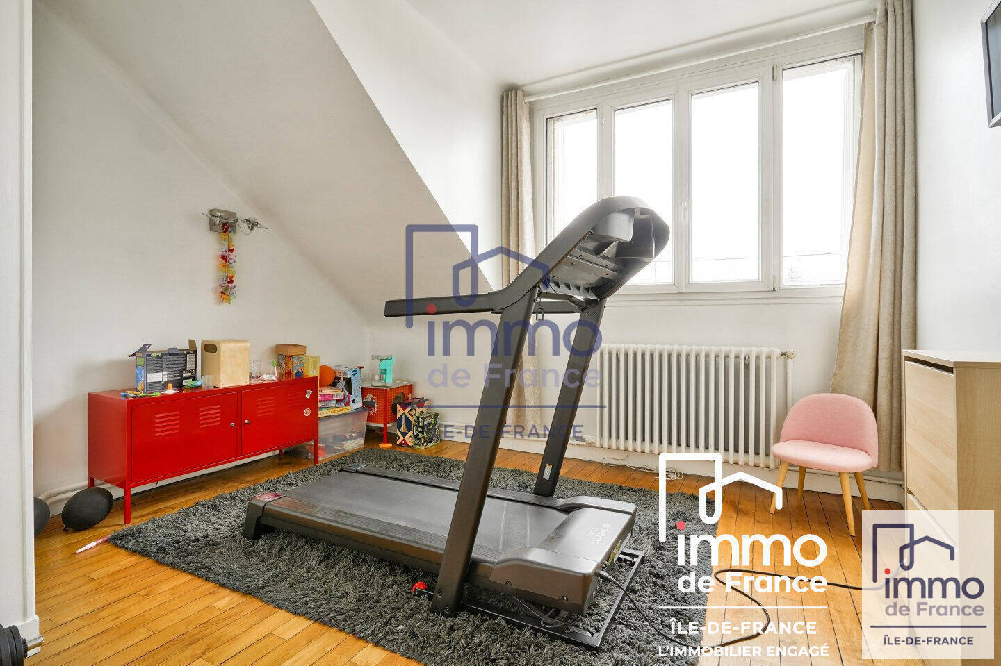 Idéalement située dans le quartier pavillonnaire du Chesnay, proche des écoles et des commerces ainsi qu'à 12 minutes à pied de la Gare du Chesnay-Gagny (RER E Saint Lazare 28 minutes) et 100 m des lignes de bus 113 et 221 et à 11 minutes à pied du Parc départemental de la Haute-île.