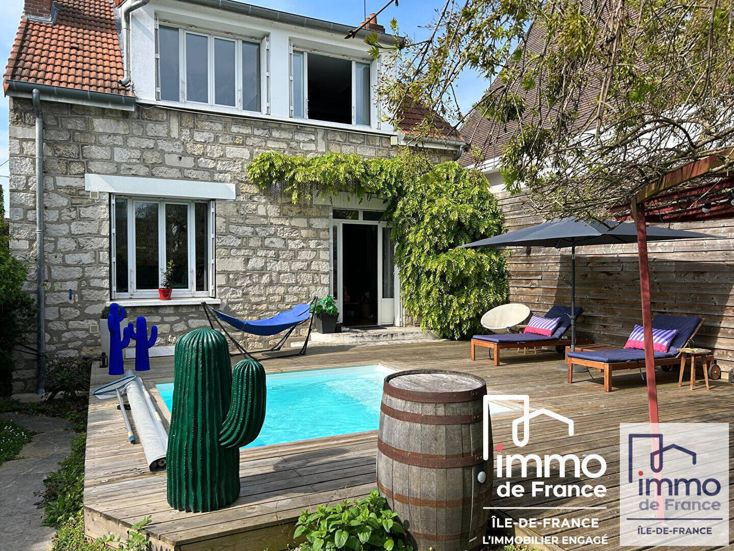 IMMO DE FRANCE vous propose cette belle meulière de 126 m² habitables, offrant environ 200m² de surface utile sur un terrain de 390m² bien arboré, sans vis à vis et avec sa piscine.