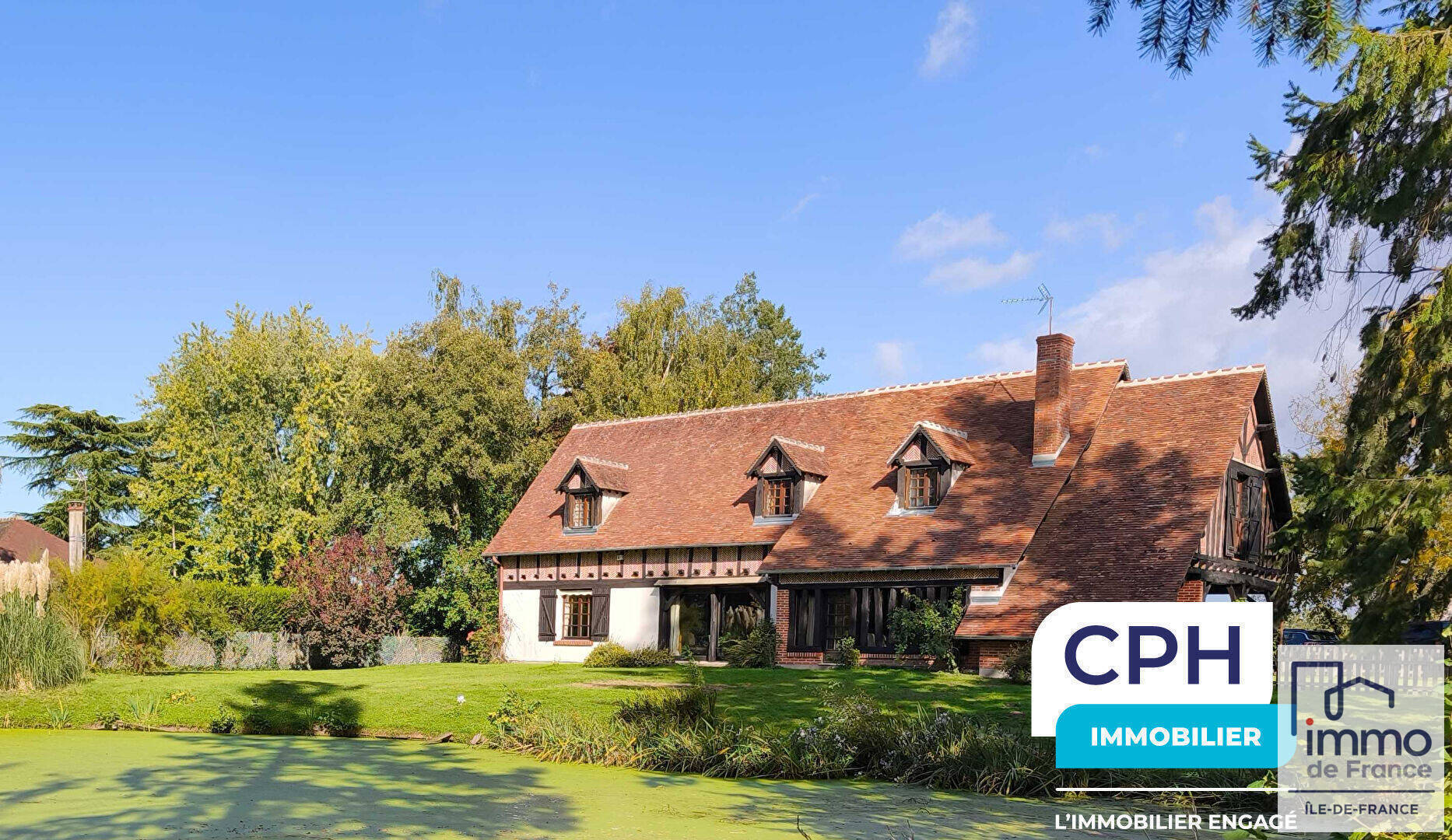 La maison principale d'une surface habitable de 267 m² env. répartie en 11 pièces principales sur 2 niveaux, avec 6 chambres, dont une au rez-de-chaussée avec bureau, salle d'eau et dressing, idéale pour un accès de plain-pied. Le bien dispose de 3 salles de bain et 1 salle d'eau, ainsi que de trois WC, garantissant un confort optimal pour toute la famille. L'espace de vie principal est un triple séjour - salle à manger de 57 m² spacieux, avec cheminée, orienté Ouest avec une vue exclusive sur le jardin paysagé et le plan d'eau. La cuisine est indépendante, aménagée et équipée, complétée par une terrasse-barbecue couverte et une cave. Un double garage fermé, avec un atelier-buanderie et WC, se trouvent au RdC de l'autre maison.